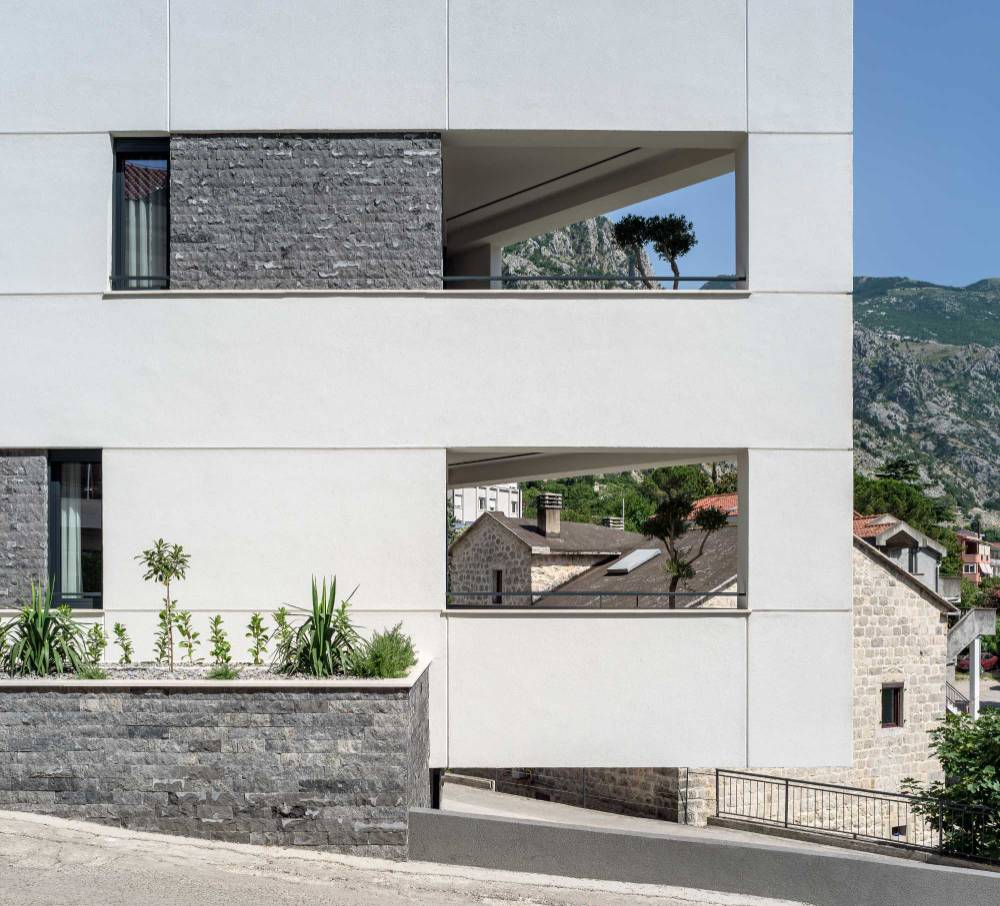 Arhitektonski koncept kombinuje čiste linije, velike staklene površine i kvalitetne prirodne materijale. Pažnja je posvećena svakom detalju, od funkcionalne organizacije prostora do luksuznih završnih obrada. Hotel je dizajniran tako da pruži privatnost, mir i vizuelnu povezanost sa prirodom, dok je istovremeno blizu urbanih sadržaja Kotora.