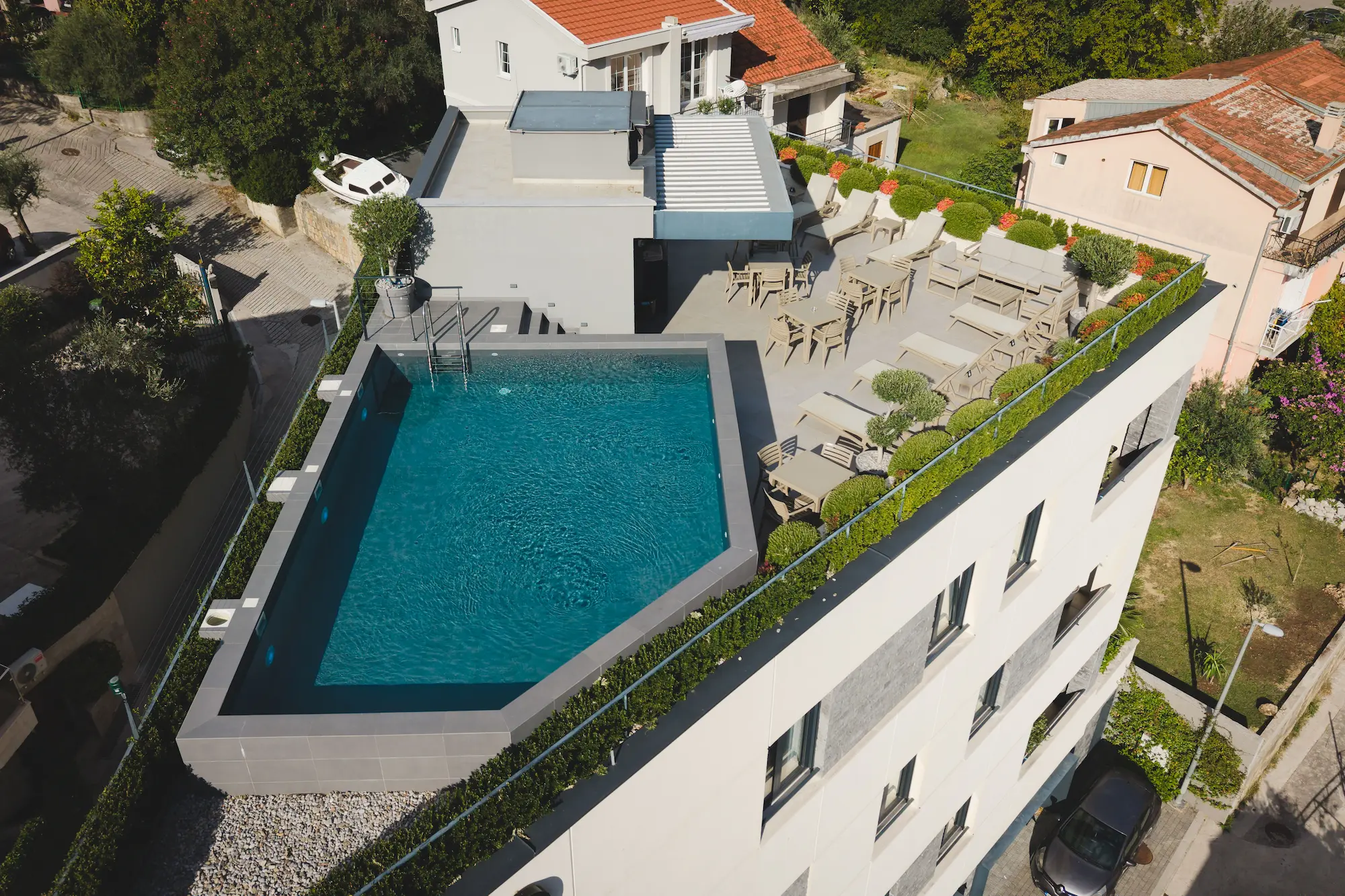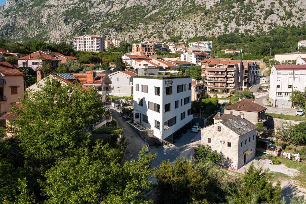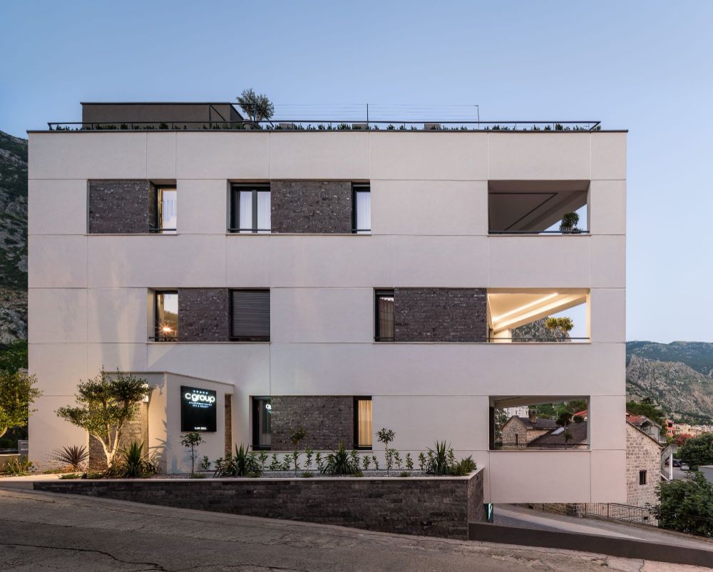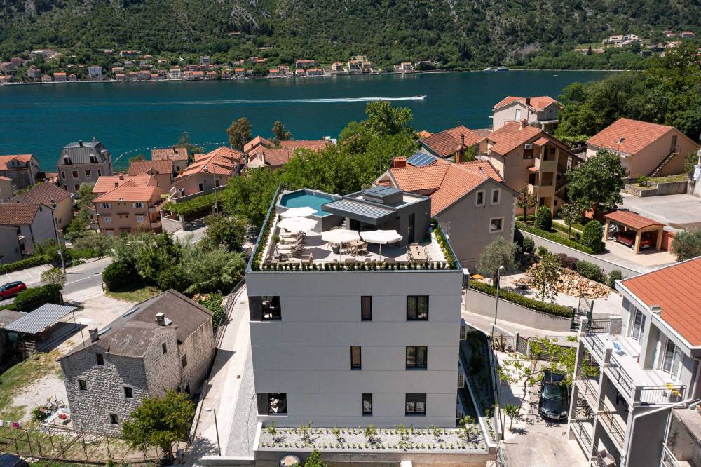 Završena 2022. godine, ova moderna hotelska zgrada spaja savremenu arhitekturu, funkcionalan dizajn i ekskluzivnu poziciju koja gostima nudi jedinstven doživljaj Boke Kotorske.