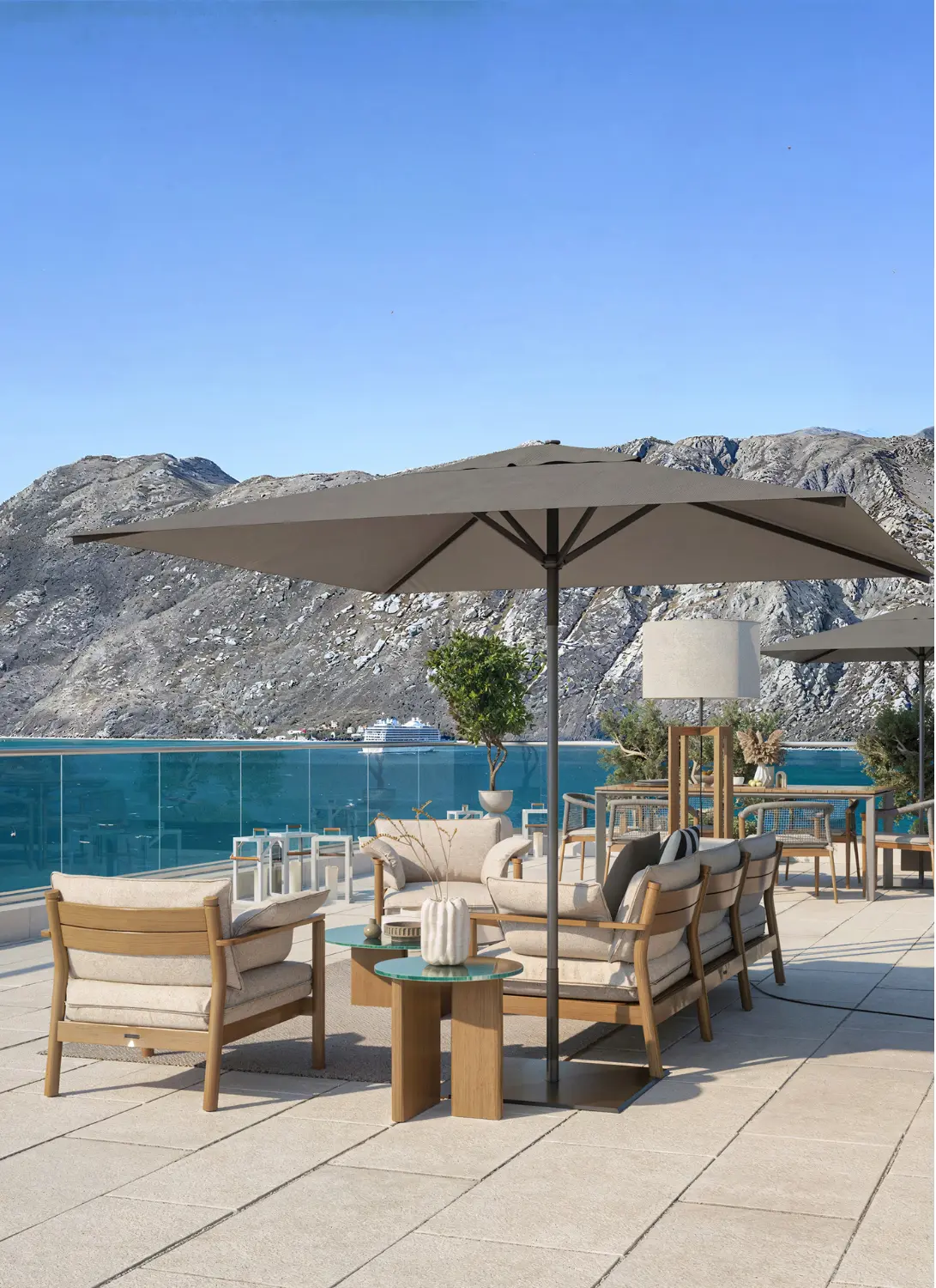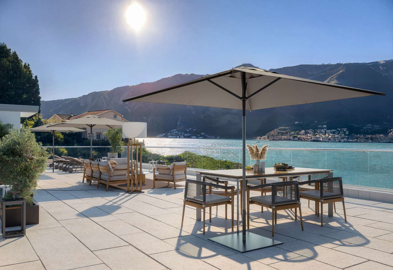 Prostrana krovna terasa otkriva panoramski pogled na zaliv, mjesto gdje jutarnje sunce i more stvaraju savršenu svakodnevnu harmoniju.